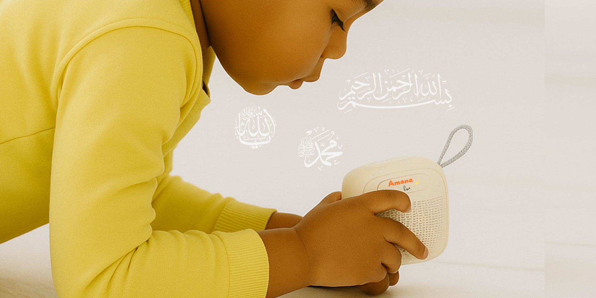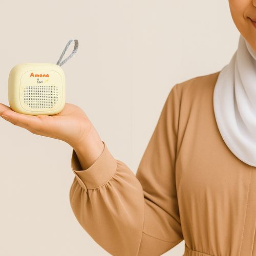 Amana Box n’est pas une enceinte ordinaire : elle guide l’enfant à travers le Coran, les invocations, les histoires prophétiques et l’apprentissage de la langue arabe.